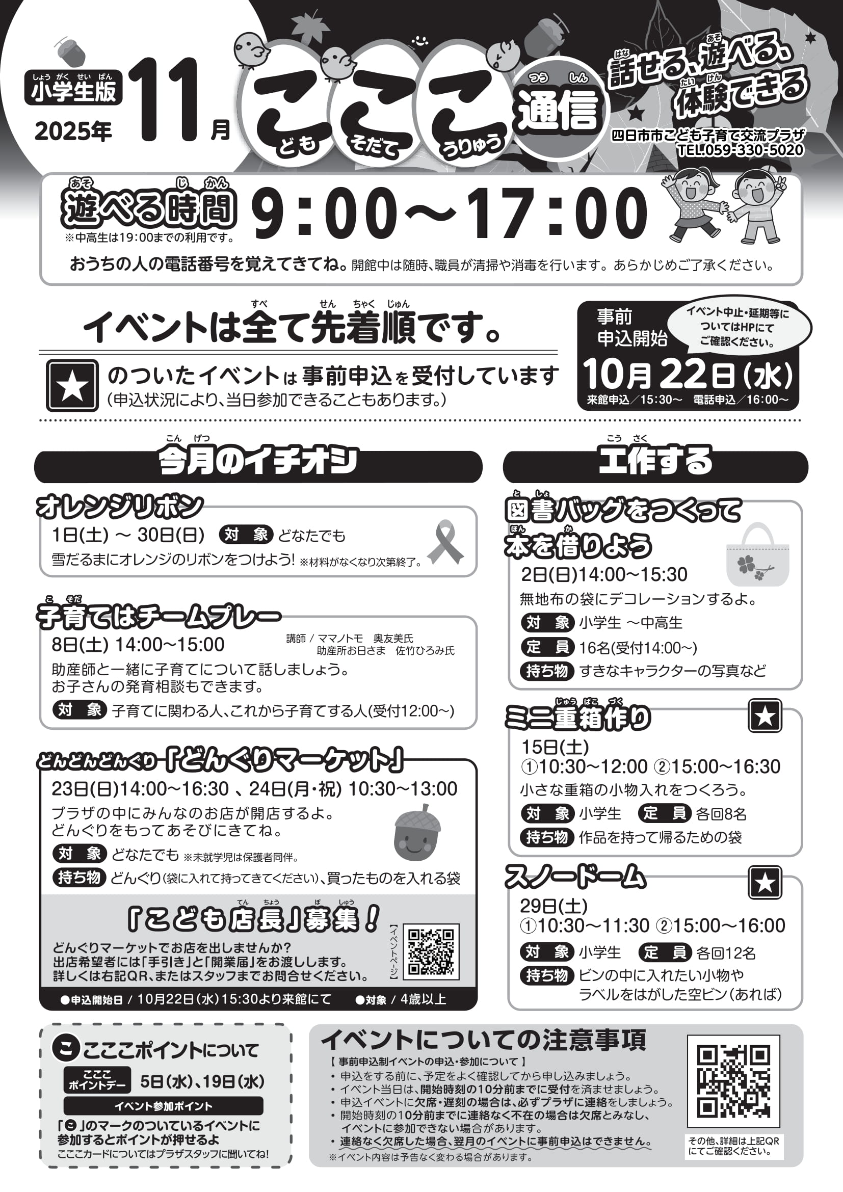 終了 小学生版こここ通信11月 オレンジリボン 開催日 2025-11-01 終了日 2025-11-30 会場 四日市市こども子育て交流プラザ 住所 三重県四日市市東新町26-32 料金 不明 イベント詳細を見る https://cocoplaza-yokkaichi.jp/info_mation/【こここ通信-11月イベント号が完成しました-4/ カテゴリー 子育て・子ども向け