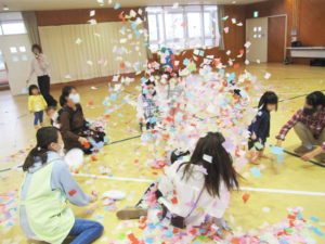 親子でふれあい遊びや、季節に合った制作などを年齢別で行います。