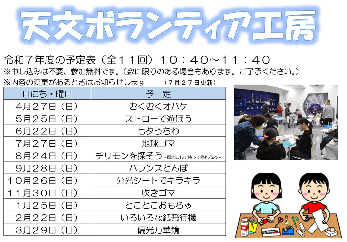 終了 天文ボランティア工房 吹きゴマ 開催日 2025-11-30 会場 四日市市博物館・プラネタリウム 5階 プラネタリウム 住所 三重県四日市市安島1丁目3−16 料金 不明 イベント詳細を見る https://www.city.yokkaichi.mie.jp/museum/miru/pg3251.html カテゴリー 雨でもOK